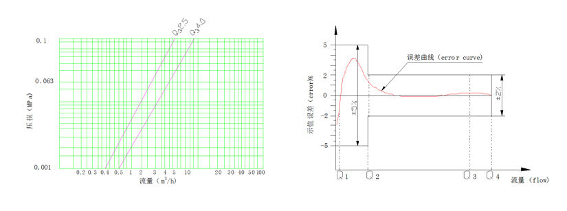 壓力損失曲線 Pressure loss curve 示值誤差限與流量曲線FLOW-ERROR CURVE