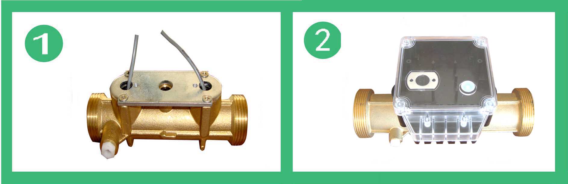 b.樓棟型熱量表超聲波流量計由表殼、換能器、換能器座組成。順流方向和逆流方向,換能器1或換能器2發(fā)射的超聲波信號由換能器2或換能器1接收。