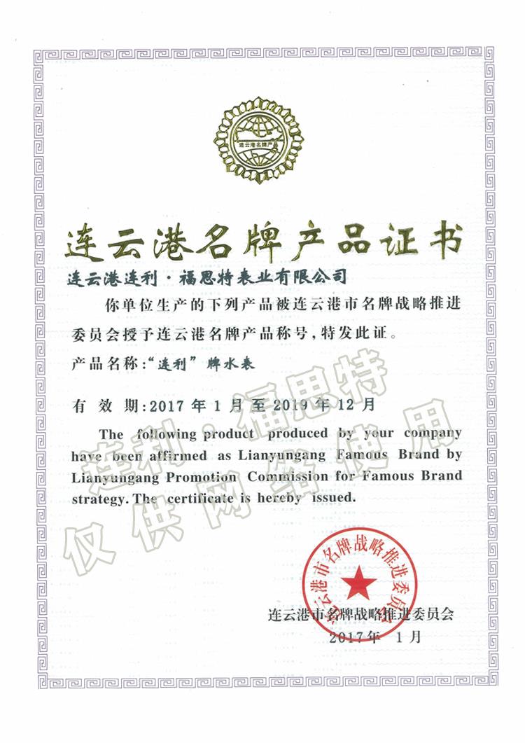 連云港名牌產(chǎn)品證書(shū)